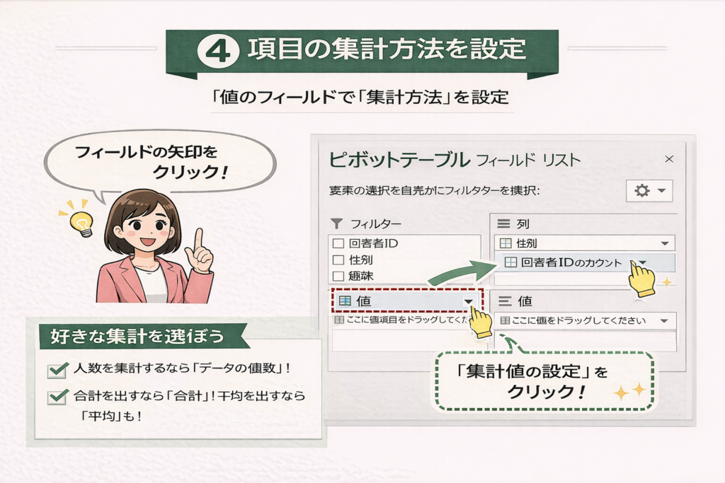 STEP4|集計方法を「合計」から「件数」に切り替える