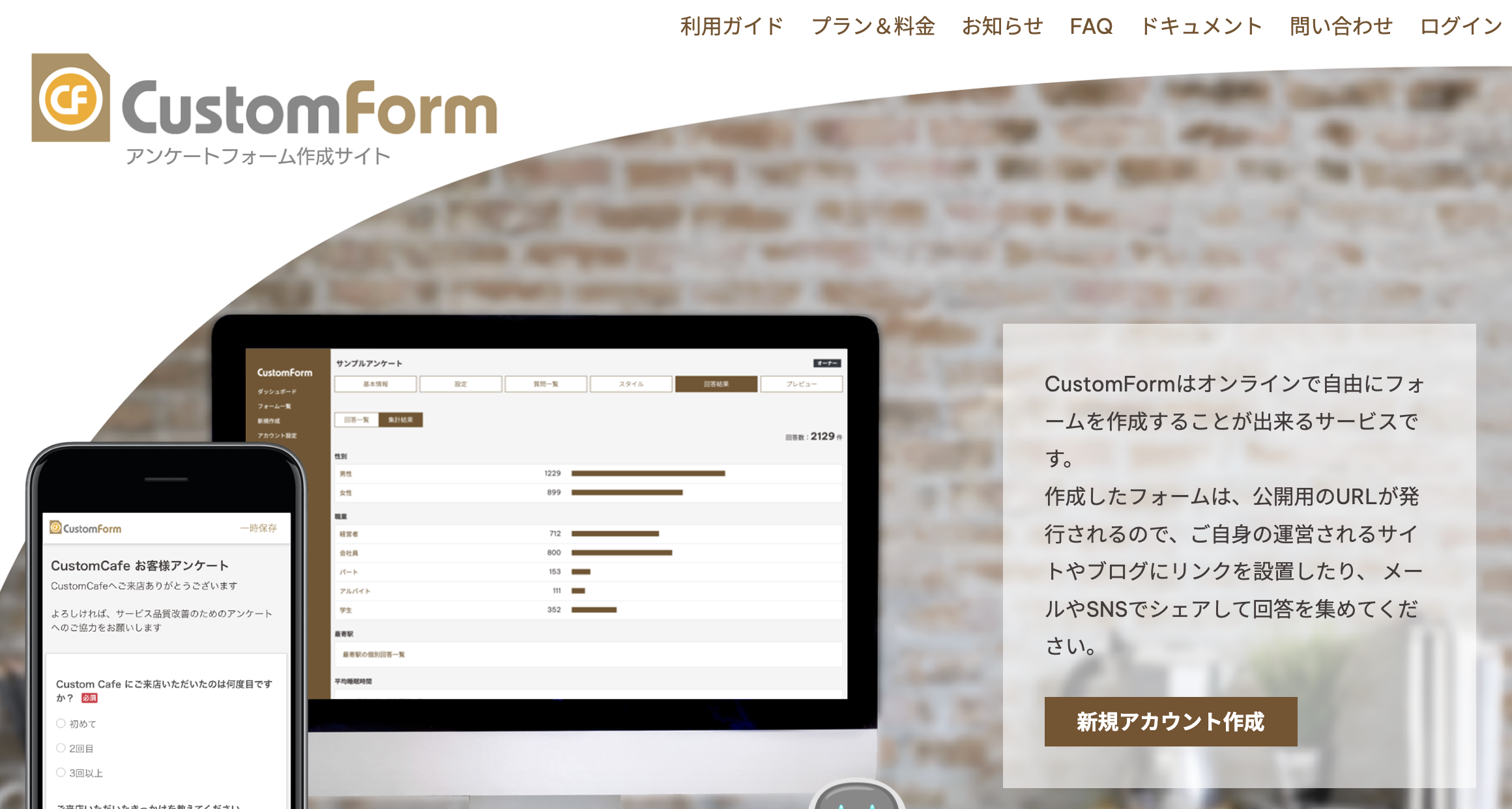 CustomFormは、設問数やアンケート数に制限がない点が最大の特徴です。無料プランでもこの自由度が維持されているため、質問数が多い複雑な調査を試したい場合に向いています。