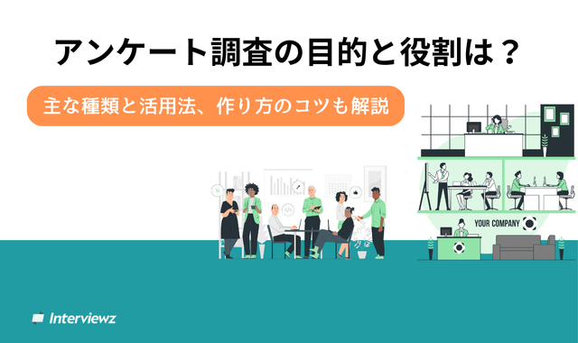 インタビューズは多段階設問や条件分岐、データの自動集計が可能で、企業のマーケティング調査や人事アンケートに活用されています。